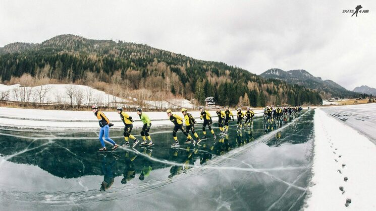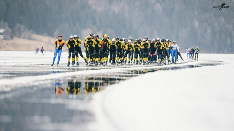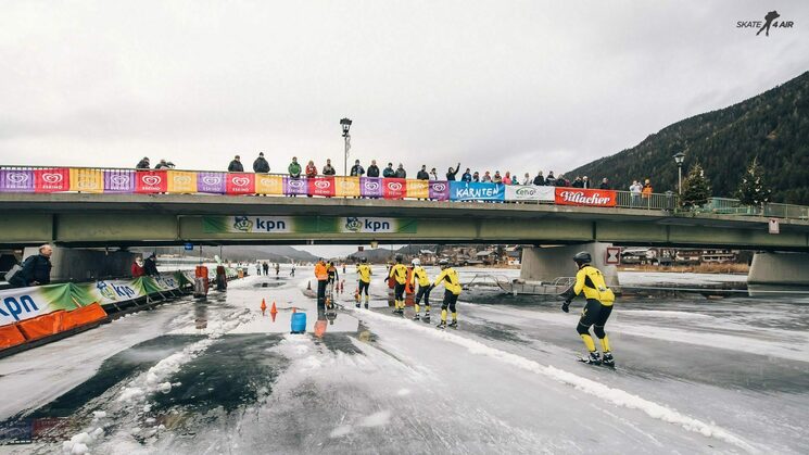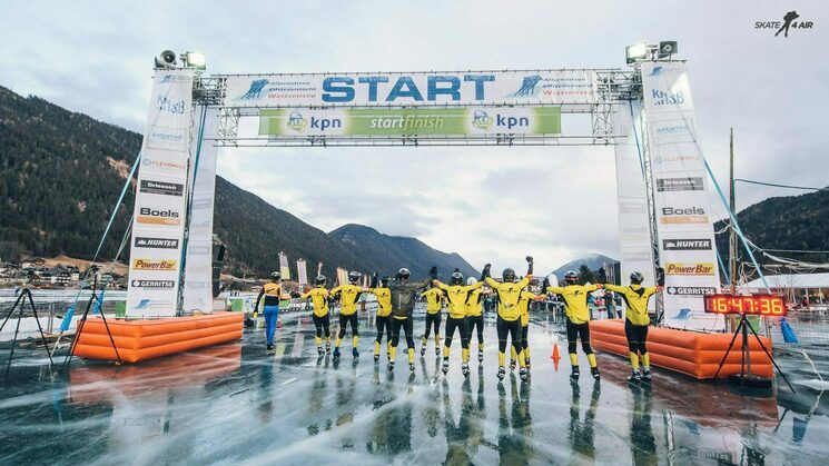 05 februari 2017 17:51Gisteren ben ik teruggekomen uit Oostenrijk. Het was een hele bizarre, zware, maar daardoor ook een hele mooie tocht. Door de dooi stond er permanent zo’n 3 cm water op het ijs. Dat gleed op zich prima, maar als je viel (en dat is 3x gebeurd...) was je echt zeiknat. Daarnaast waren er 2 stukken van ongeveer 500 meter met "fondantijs" waar bijna niet te schaatsen was. Vanwege de zware omstandigheden besloot de organisatie om de deadline voor het ingaan van de laatste ronde (normaal 17:30 uur) te vervroegen naar 16:00 uur. Gelukkig konden we nog wat versnellen, waardoor we ruim voor 16:00 uur door de gate waren. Toen we zeker wisten dat we mochten finishen, hebben we de laatste ronde heel rustig uitgeschaatst en zijn we met z'n allen over de finish gegaan. Het was ook echt een team prestatie. Ik ben erg blij dat ik de 200km uitgereden heb en ben ook zeer tevreden met mijn tijd van 9:46:56 onder deze omstandigheden.
