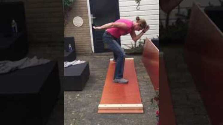 11 oktober 2016 19:20Nu de schaatsbanen (nog) niet open zijn, moet er toch getraind worden. En daar bedacht Hans wat op: hij maakt een schaatplank! Hans, dank je wel! Het valt nog niet mee... ;-)