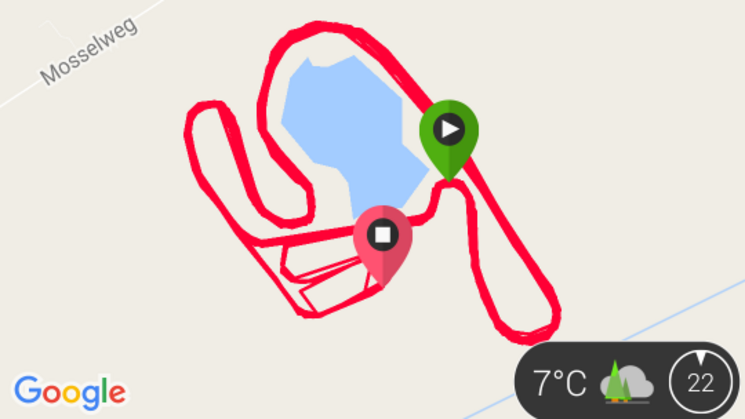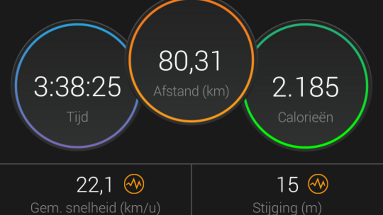Uiteindelijk 80 km geschaatst in 3 uur 38 minuten, met een gemiddelde van 22 km/uur.